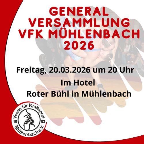Generalversammlung am 20.03.2026 um 20 Uhr auf dem Roten Bühl in Mühlenbach.